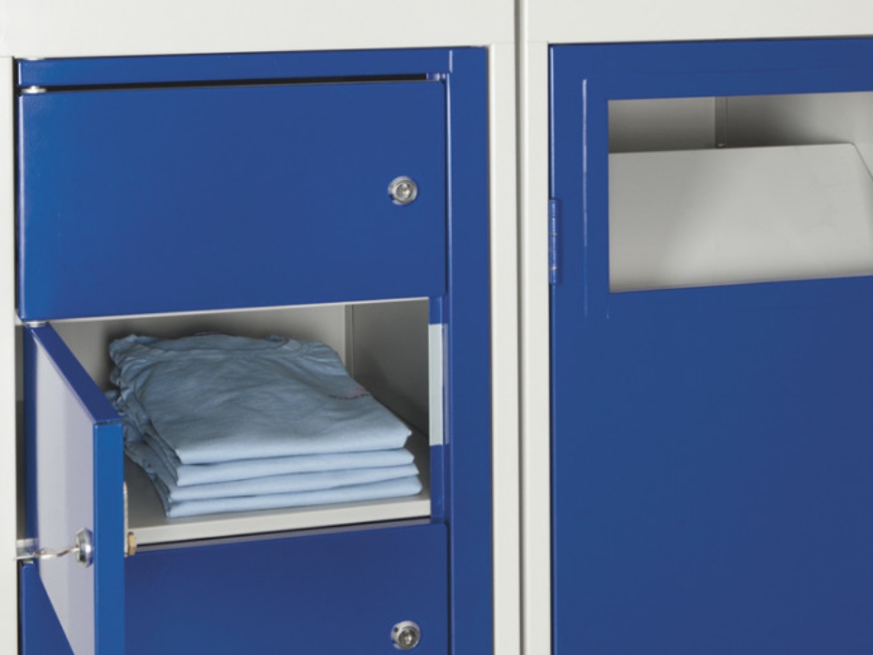 Unsere Schranksysteme sind modular aufgebaut und lassen sich flexibel an die Größe und Anforderungen Ihrer Einrichtung anpassen. Sie sorgen für geordnete Abläufe bei der Ausgabe und Rücknahme von Mietkleidung, Flachwäsche oder Schutztextilien. Jeder Mitarbeitende erhält seine eigene Kleidung, was den Materialfluss optimiert, Fehler reduziert und die Hygiene garantiert. Gleichzeitig minimiert das System den organisatorischen Aufwand für Ihr Personal.
